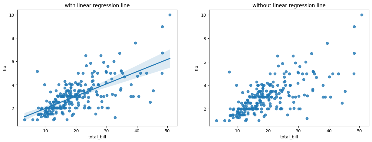 ax[0].set_title('with linear regression line') # 회귀선 + 산점도
