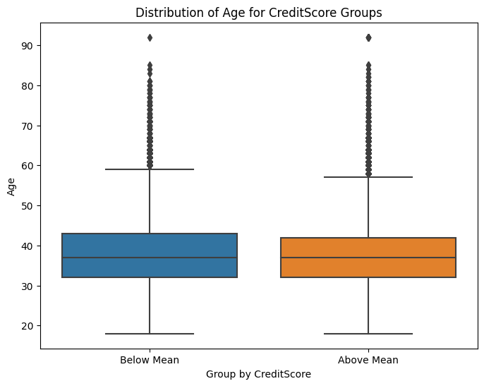 'Group by CreditScore': ['Below Mean'] * len(low_credit_A) + ['Above Mean'] * len(high_credit_A)