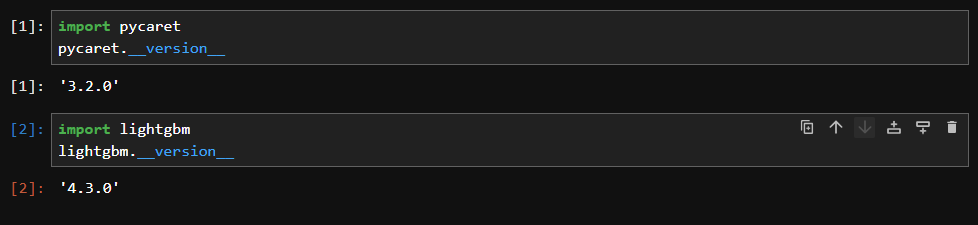 >> 위와 같이 pycaret과 lightgbm 버전을 확인하여 설치가 잘 되었는지 확인한다.